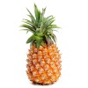 凤梨(学名:Ananas comosus (Linn.) Merr.),茎短。叶多数,莲座式排列,剑形,顶端渐尖,全缘或有锐齿,腹面绿色,背面粉绿色,边缘和顶端常带褐红色,生于花序顶部的叶变小,常呈红色。花序于叶丛中抽出,状如松球;苞片基部绿色,上半部淡红色,三角状卵形;萼片宽卵形,肉质,顶端带红色;花瓣长椭圆形,端尖,上部紫红色,下部白色。聚花果肉质。花期夏季至冬季。